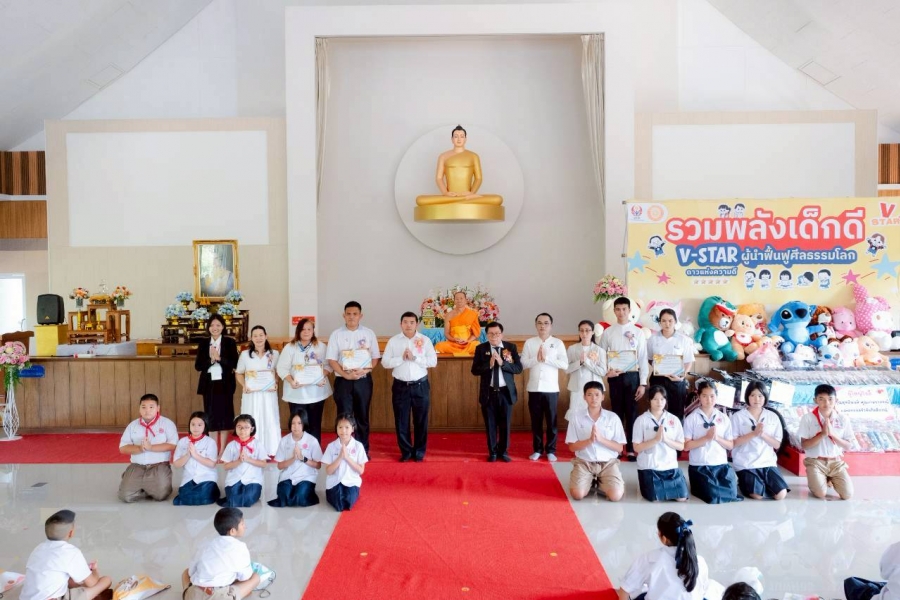 วันอังคารที่ 2 ธันวาคม พ.ศ. 2568 นายนิติศาสตร์ พรมแสงใส ผู้อำนวยการสำนักงานเขตพื้นที่การศึกษาประถมศึกษาฉะเชิงเทรา เขต 2 มอบหมายให้ นายพิพัฒน์ พัฒนะพุฒิเลิศ รองผู้อำนวยการสำนักงานเขตพื้นที่การศึกษาประถมศึกษาฉะเชิงเทรา เขต 2 เป็นประธานในพิธีมอบเกียรติบัตรให้กับโรงเรียนในสังกัด จำนวน 23 โรงเรียน เนื่องในกิจกรรม วันรวมพลังเด็กดี V-STAR ผู้นำฟื้นฟูศีลธรรมโลก เยาวชนไทยรวมใจทำความดี จ.ฉะเชิงเทรา ครั้งที่ 18 พร้อมด้วย คณะศึกษานิเทศก์ ณ ศูนย์ปฏิบัติธรรมพนมสารคาม อ.พนมสารคาม จ.ฉะเชิงเทรา |