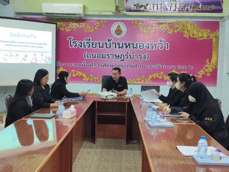 นายนิติศาสตร์ พรมแสงใส ผู้อำนวยการสำนักงานเขตพื้นที่การศึกษาประถมศึกษาฉะเชิงเทรา เขต 2 มอบหมายให้ นางวรัชญา รักยศ ผู้อำนวยการหน่วยตรวจสอบภายใน พร้อมด้วย นางสาววิไลวรรณ แสนคำภา เจ้าหน้าที่รับผิดชอบโครงการอาหารกลางวัน ร่วมกับผู้แทนจากเทศบาลตำบลบ้านซ่อง ให้การต้อนรับ นายหิรัญ ไชยกันยา ผู้อำนวยการสำนักงาน ป.ป.ช. ประจำจังหวัดฉะเชิงเทรา และคณะ ในโอกาสลงพื้นที่ตรวจเยี่ยมและติดตามการดำเนินงานโครงการอาหารกลางวันนักเรียนและอาหารเสริม (นม) ณ โรงเรียนบ้านหนองหว้า อำเภอพนมสารคาม จังหวัดฉะเชิงเทรา