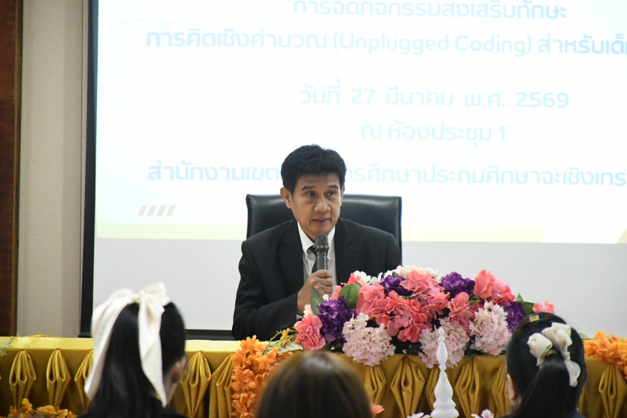 วันศุกร์ที่ 27 มีนาคม พ.ศ. 2569 เวลา 09.00 น. นายนิติศาสตร์ พรมแสงใส ผู้อำนวยการสำนักงานเขตพื้นที่การศึกษาประถมศึกษาฉะเชิงเทรา เขต 2 มอบหมายให้ นายกมล วุ่นหนู ประธานคณะกรรมการติดตาม ตรวจสอบ ประเมินผล และนิเทศการศึกษา (ก.ต.ป.น.) เป็นประธานในพิธีเปิด การประชุมเชิงวิชาการ (Symposium) กิจกรรมแลกเปลี่ยนเรียนรู้การจัดกิจกรรมส่งเสริมทักษะการคิดเชิงคำนวณ (Unplugged Coding) สำหรับเด็กปฐมวัย ณ ห้องประชุม 1 สพป.ฉะเชิงเทรา เขต 2